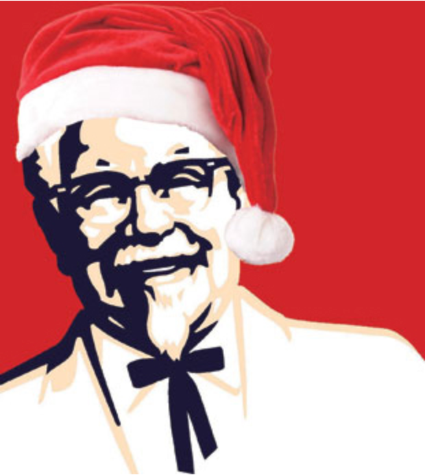 Now, speaking of Kentucky Fried Chicken, interestingly enough, the problem people faced with turkeys was that there were few ovens in Japanese homes, and turkey is not a traditional food; therefore, KFC devised a solution, marketing fried chicken as the perfect, convenient Christmas dinner, filling the cultural gap. The result was an iconic tradition of Japanese families pre-ordering chicken months in advance and lining up for hours, making KFC a Christmas dinner staple.
